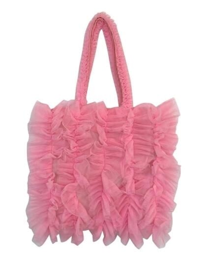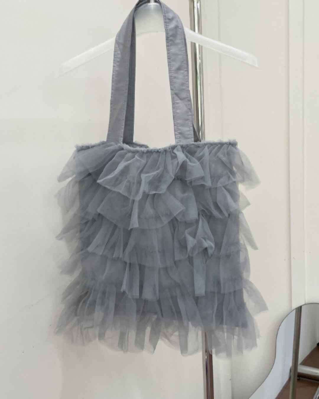 ふんわりと重なり合うチュールフリルが印象的なトートバッグ。