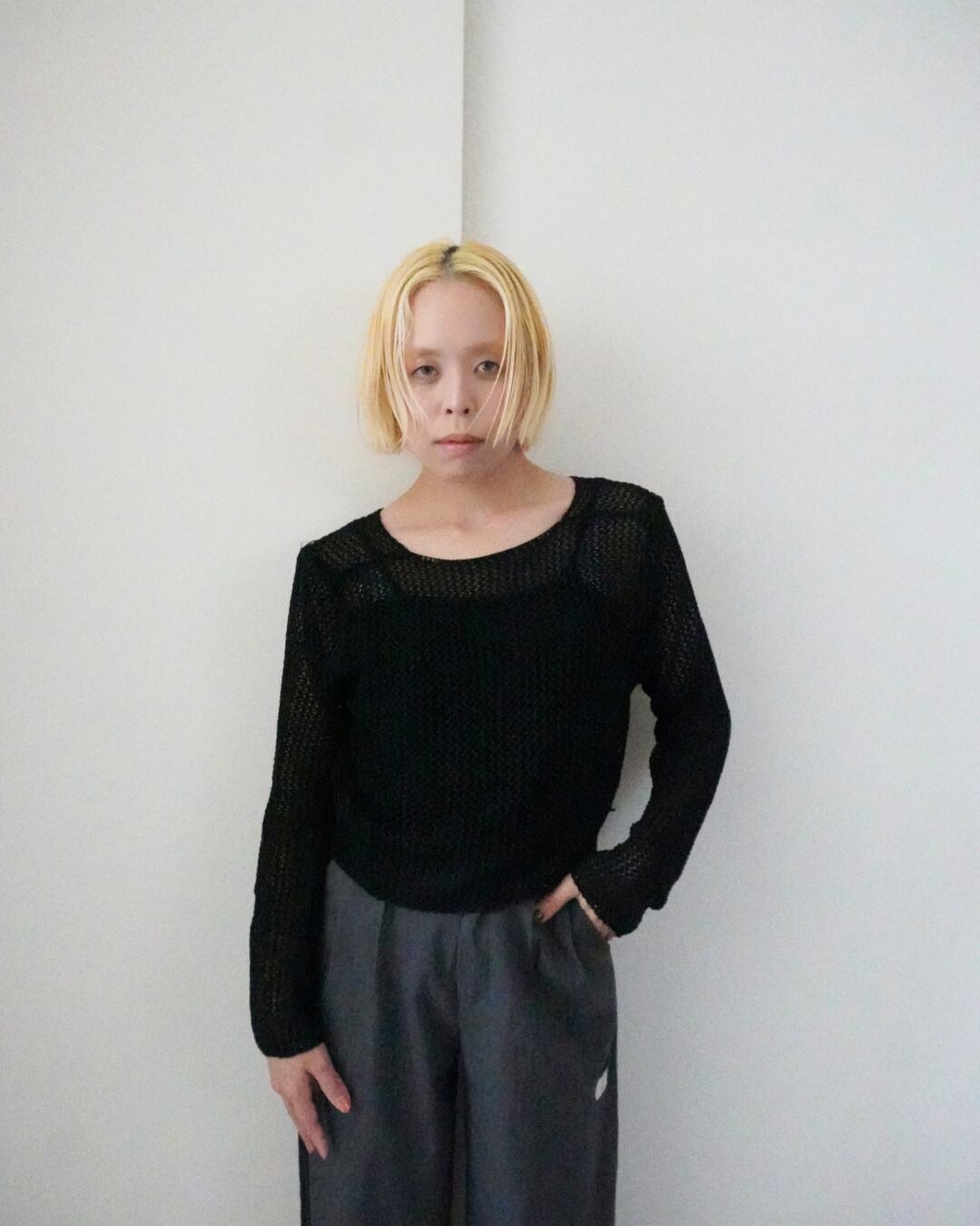 ざっくりとした編み目が印象的なニットは、肌にほどよい抜け感をプラスし、シンプルながらも雰囲気のあるスタイリングに。セットのキャミソールと合わせることで、自然なレイヤードが完成します。
