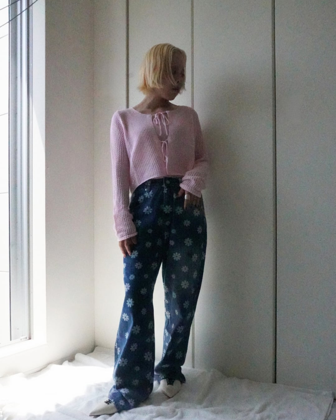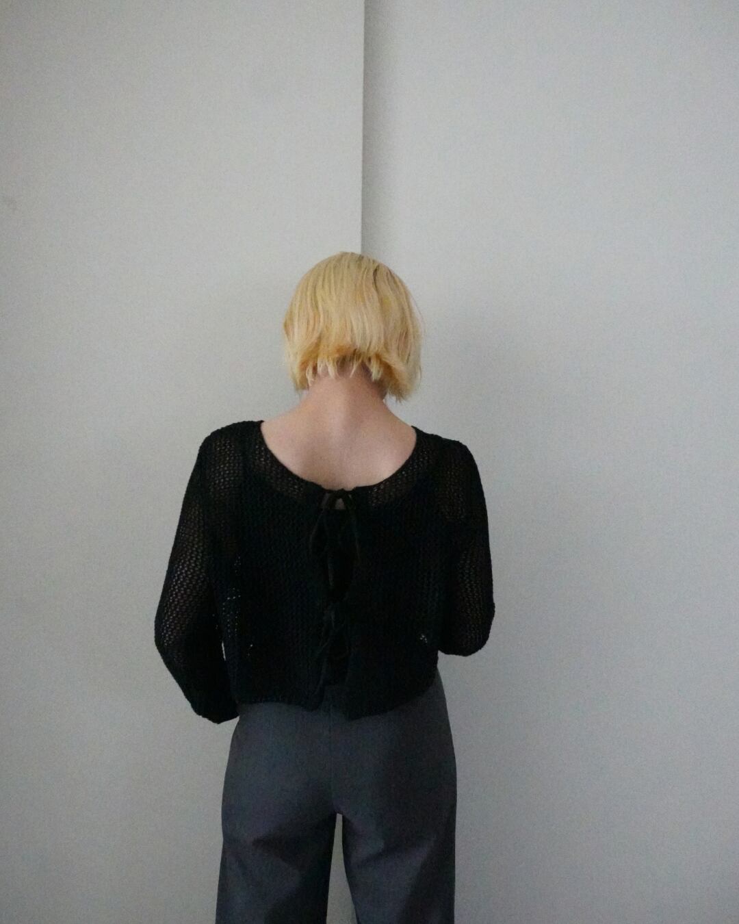リボンをフロントにして軽やかに羽織ったり、後ろにしてシンプルなプルオーバーとして着たり、気分やコーディネートに合わせて印象を変えられます。